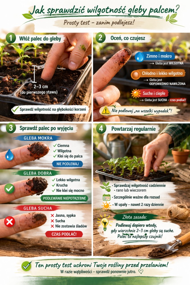 Zanim sięgniesz po konewkę, sprawdź. Zawsze. To zajmuje 3 sekundy i oszczędza rozsadę.