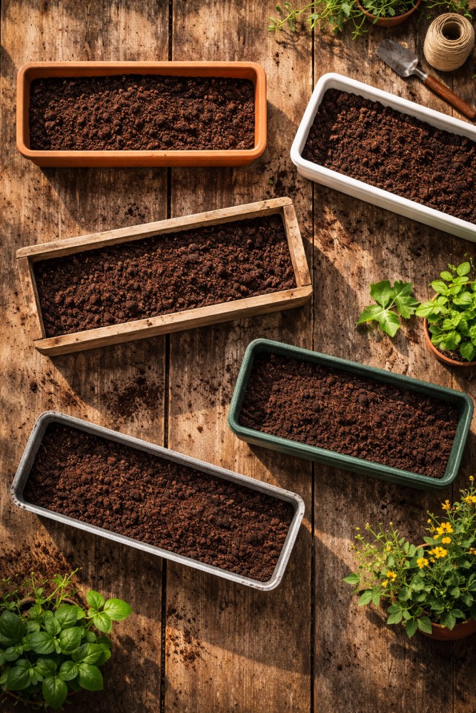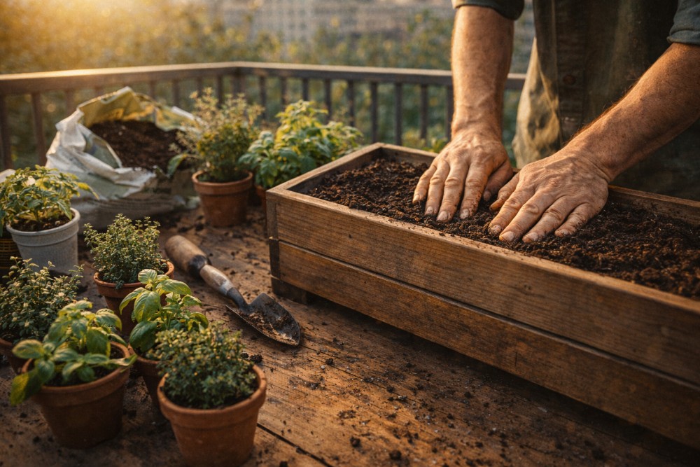 Skrzynki 10–12 cm głębokości, które często sprzedają się jako „balkonowe", nadają się właściwie tylko do dekoracyjnego zielska na jeden sezon. Do prawdziwej uprawy potrzebujesz przynajmniej 15–20 cm.