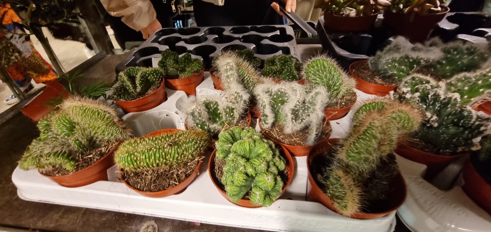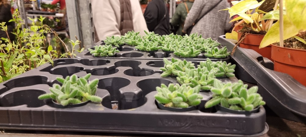 Zapomnijcie o klasycznych targach z wystawcami za stoiskami, którzy opowiadają o swoich produktach. Tutaj formuła była inna — to raczej taki kompaktowy sklep z roślinami rozstawiony w holu stadionu. Regały ustawione obok siebie, na nich rośliny posegregowane gatunkami, każda z wydrukowaną etykietą z ceną festiwalową Bierzesz co chcesz, płacisz przy kasie. Prosto i skutecznie.