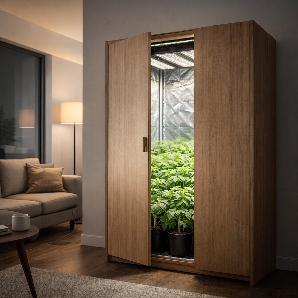 B. Szafy uprawowe (Grow Cabinets / Stealth Boxy) Urządzenia tworzone z myślą o dyskrecji i estetyce.