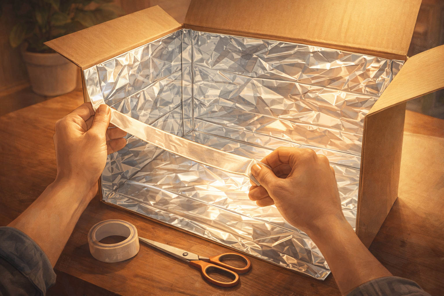 • Czego szukać (hasła do wyszukiwarki/sklepu): Koc ratunkowy NRC (koszt ok. 5-10 zł w aptece, srebrną stroną do roślin) lub Folia Mylar Diamond (do kupienia w sklepach growshop na metry). Możesz też po prostu pomalować wnętrze szafki białą farbą matową, która rewelacyjnie rozprasza światło.