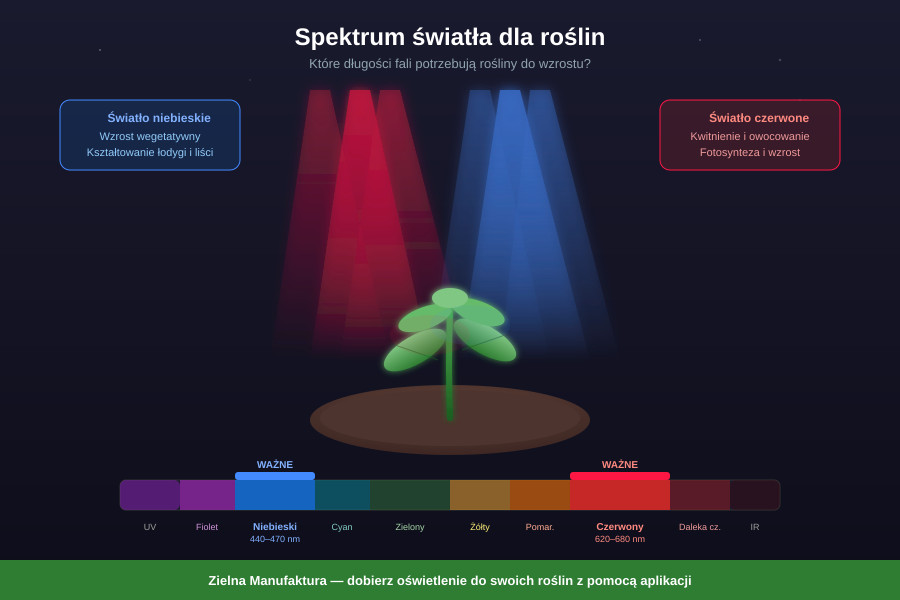 • Czego szukać: Żarówka LED Grow Full Spectrum E27 (np. 15W - 30W) wkręcona w zwykłą oprawkę z kablem, lub mały Panel LED do roślin (tzw. naświetlacz). Żarówki najlepiej zawiesić na regulowanych linkach, by podnosić je w miarę wzrostu siewek.