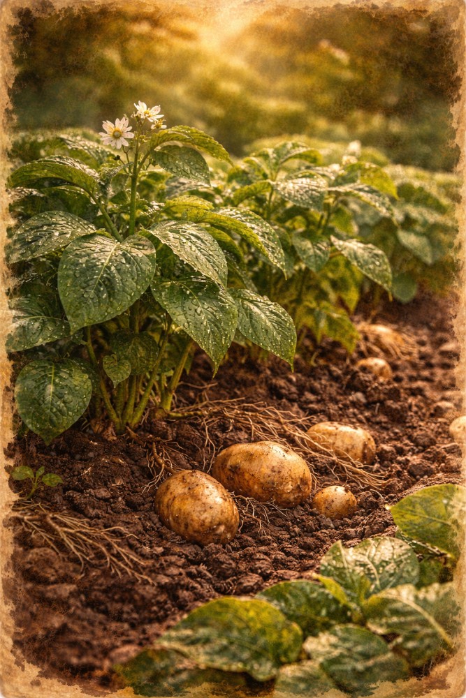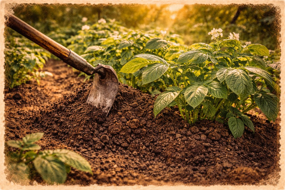 Po pierwsze — nowe bulwy tworzą się na łodygach podziemnych (stolonach). Im dłuższa i głębsza kopczyk ziemi przy roślinie, tym więcej miejsca dla bulw i tym większy plon. Po drugie — obsypywanie zakrywa ewentualnie odsłonięte bulwy, które na świetle zieleneją i produkują solaninę.
