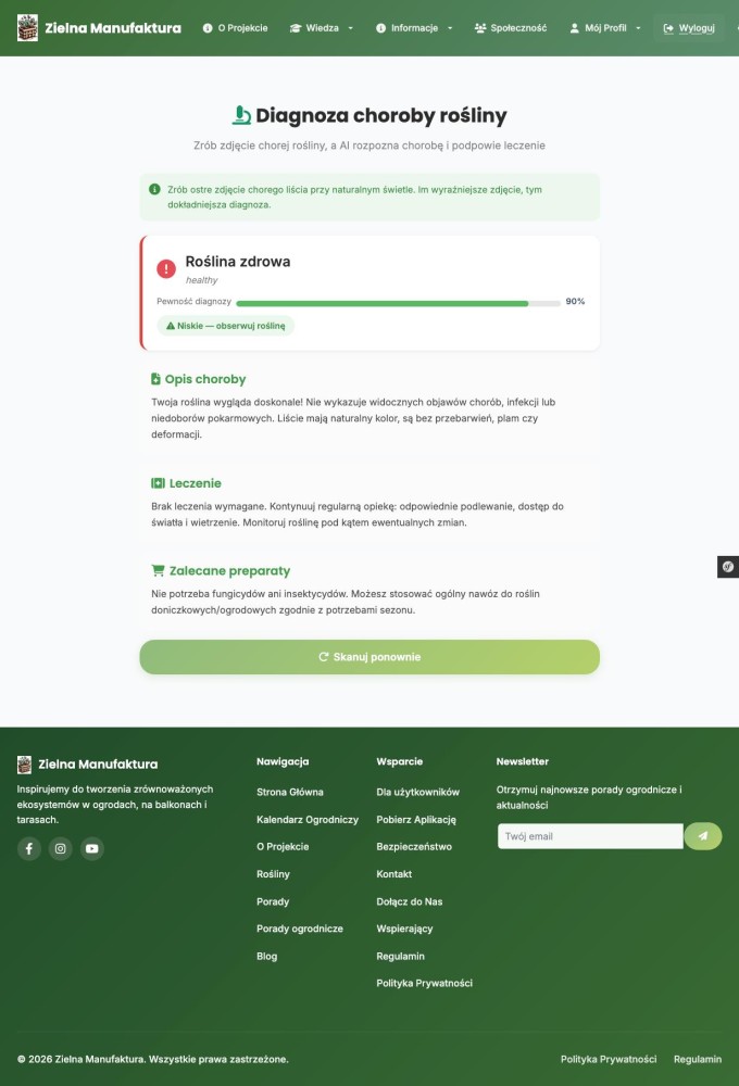 Stalo se vám už, že jste si všimli znepokojujících skvrn na listech, žloutnutí nebo podivných zbarvení na vašich rostlinách — a nevěděli jste, co je příčinou? Od teď nemusíte být expert, abyste postavili správnou diagnózu. V Zielona Manufaktura se objevila nová funkce: rozpoznávání nemocí rostlin z fotografie pomocí umělé inteligence.