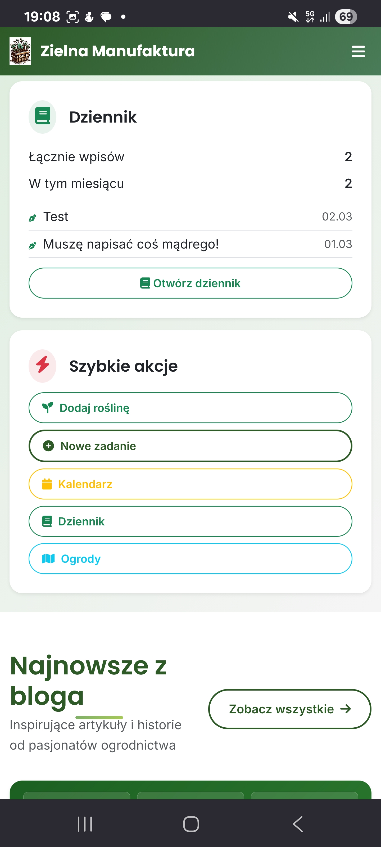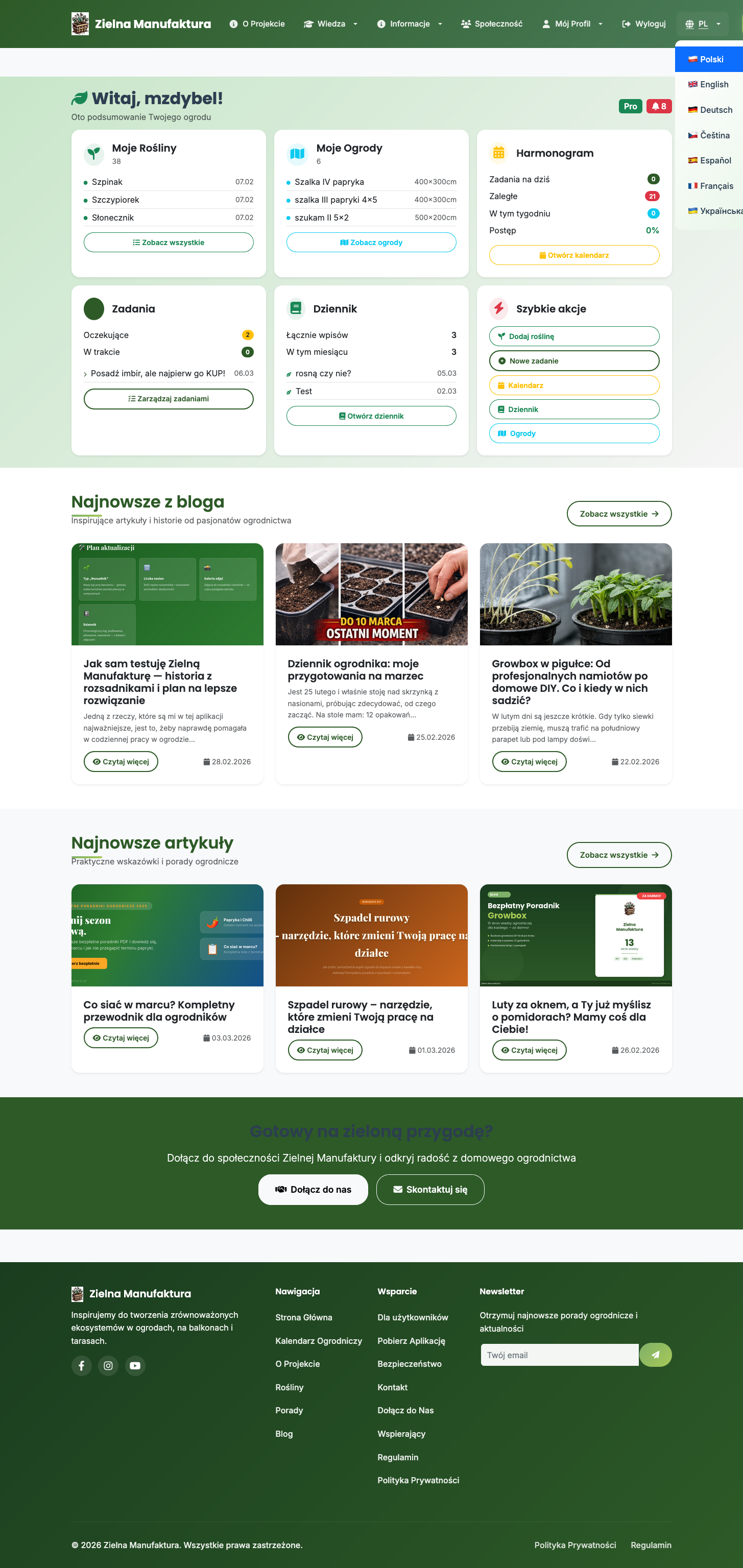 Dlatego jedną z ważniejszych zmian, które wprowadziliśmy niedawno w Zielnej Manufakturze, jest Garden Dashboard — spersonalizowany panel główny, który po zalogowaniu zastępuje generyczne treści i pokazuje dokładnie to, co dla Ciebie ważne.