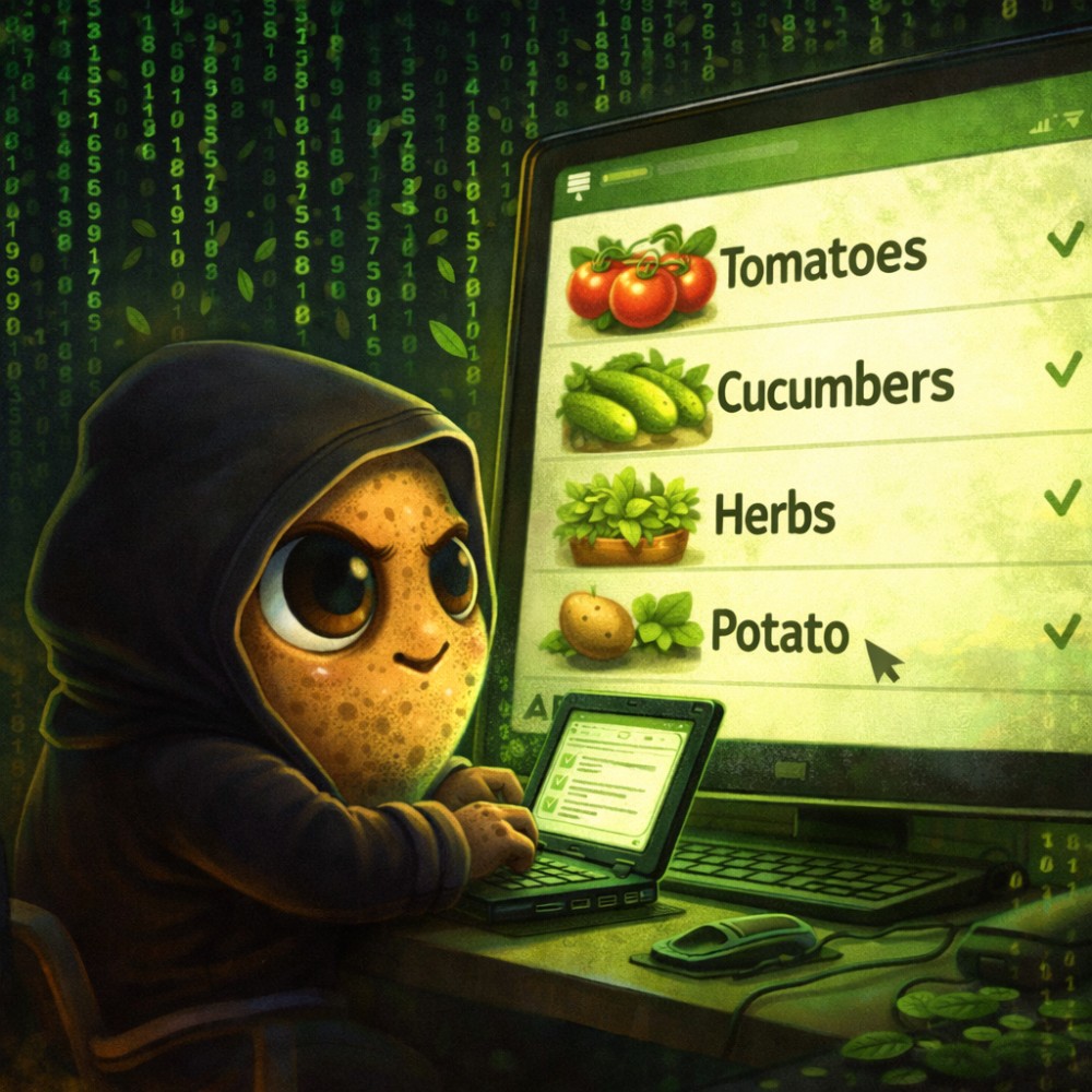 And then I sat down with a calendar and started planning the season. April, time to slowly think about potatoes — prepare seed potatoes, plan the date, mark it in the schedule... I open the app, search the list and... there's no potato.