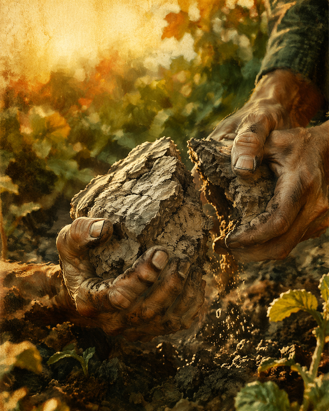 Nie chodź po mokrej glebie gliniastej — jeden przejazd taczką po mokrej glebie niszczy strukturę którą budujesz całymi sezonami.