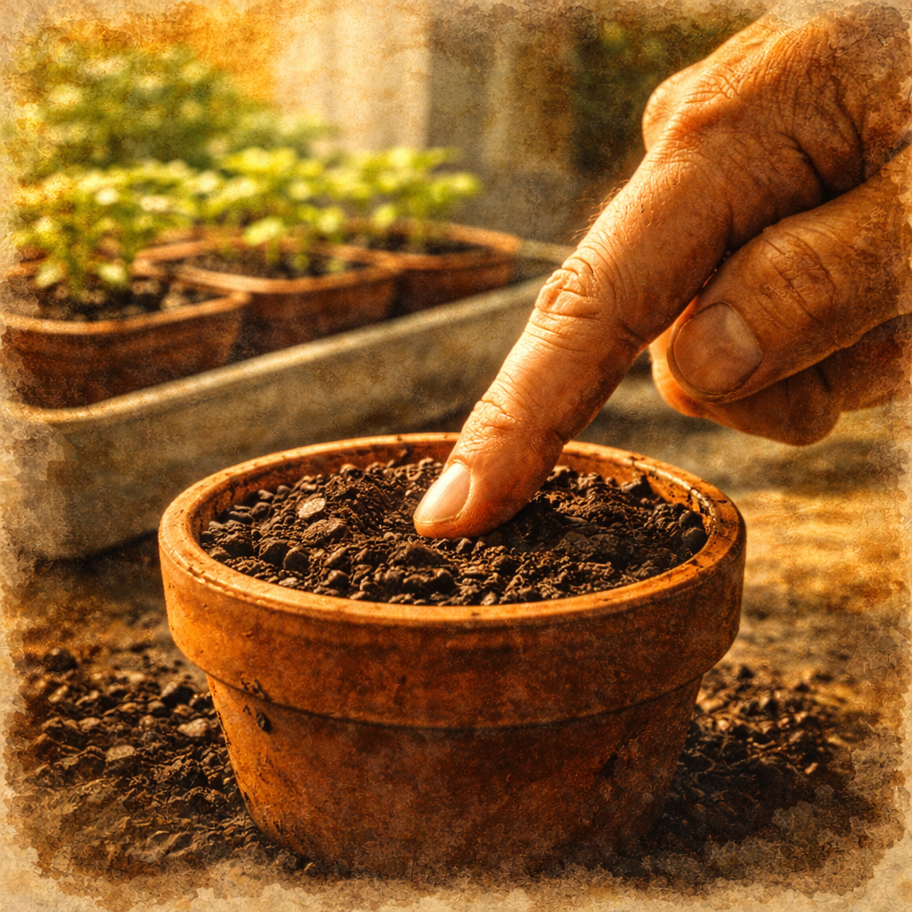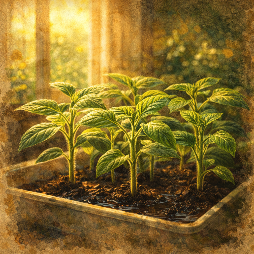 Kiedy podlewać: Gdy górna warstwa (1–2 cm) jest przesuszona. Przelana rozsada rokuje gorzej niż lekko przesuszona.