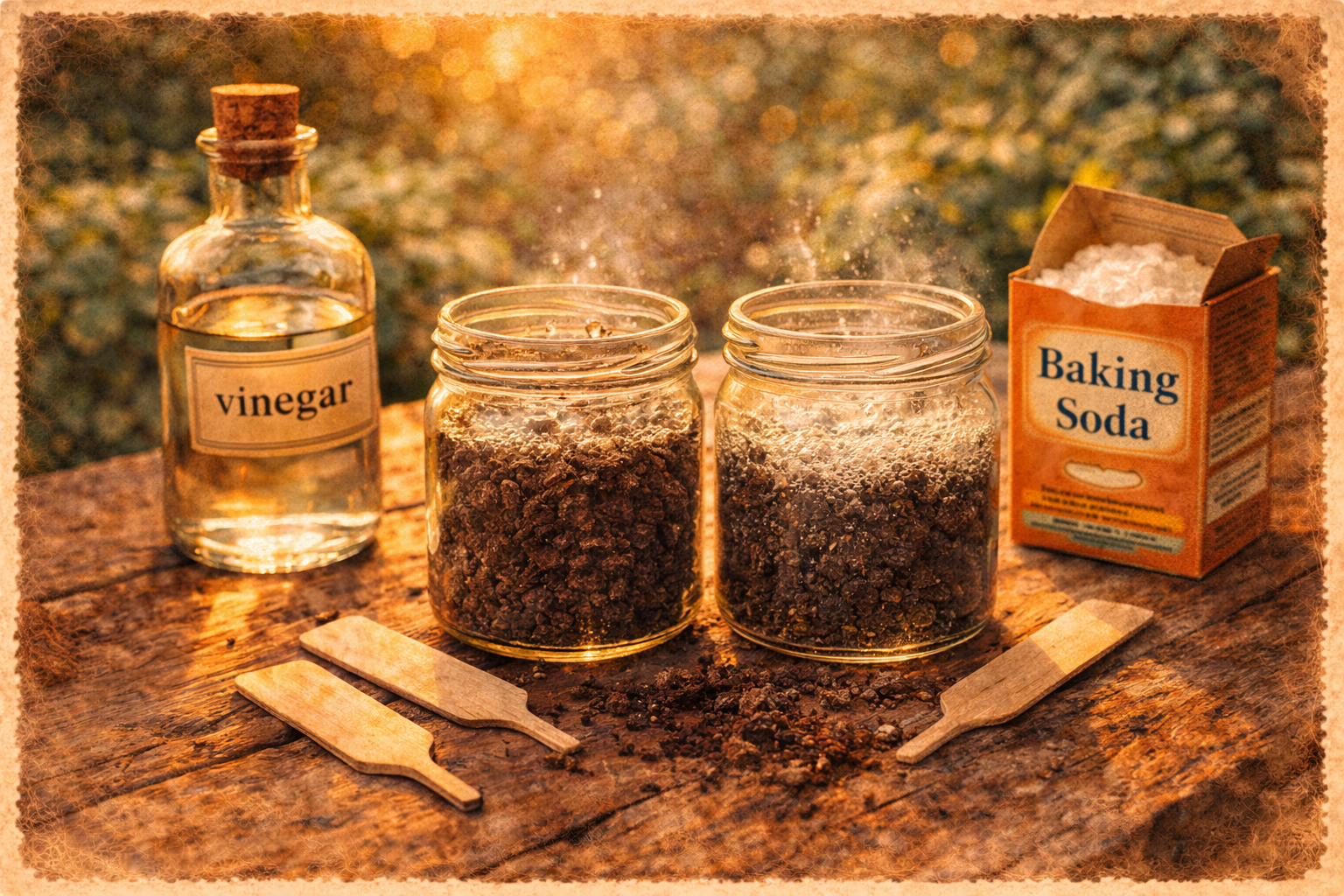 W skrócie: Ocet i soda oczyszczona to domowy test pH gleby. W 5 minut wiesz czy gleba jest kwaśna, zasadowa czy neutralna — i czy w ogóle potrzebujesz kupować droższy test ze sklepu.