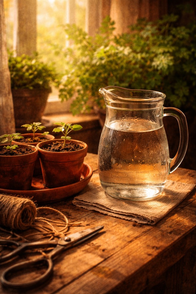 Zasada jest prosta: woda do podlewania rozsady powinna mieć temperaturę pokojową. Praktycznie oznacza to jedno: nabierz wodę wieczorem i zostaw na noc. Rano masz wodę o odpowiedniej temperaturze, odchlorowaną przez kilkanaście godzin — gotową do użycia.
