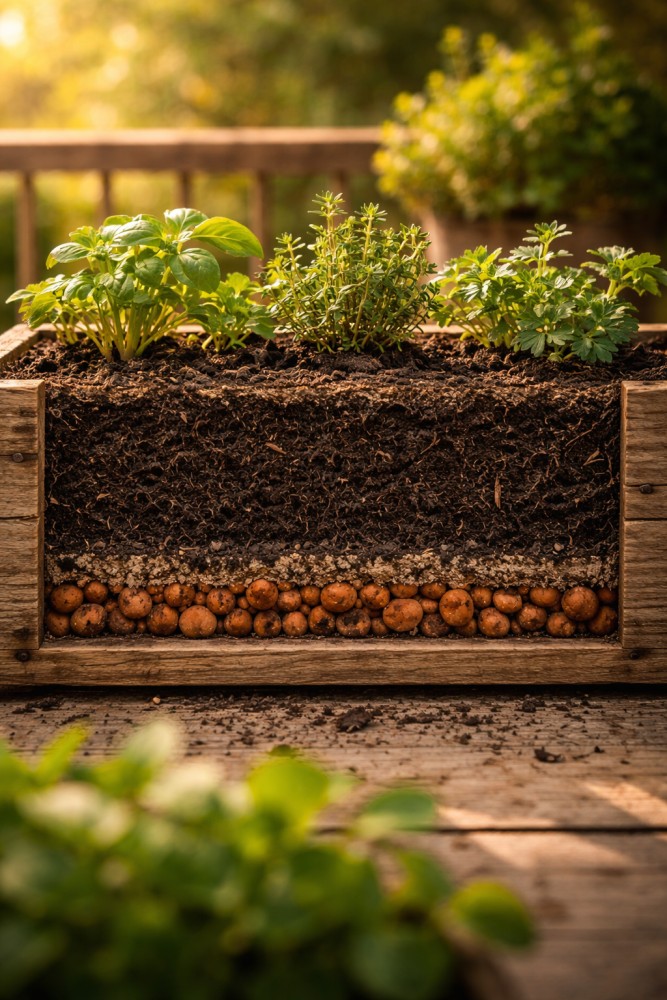 Skrzynki 10–12 cm głębokości, które często sprzedają się jako „balkonowe", nadają się właściwie tylko do dekoracyjnego zielska na jeden sezon. Do prawdziwej uprawy potrzebujesz przynajmniej 15–20 cm.