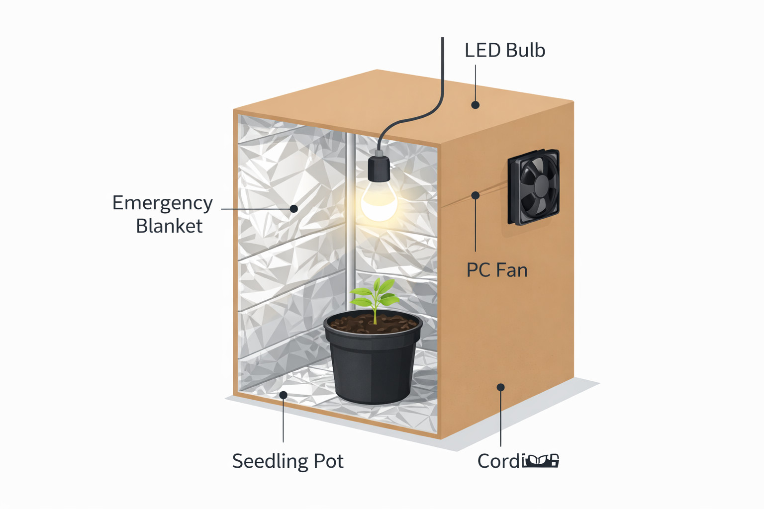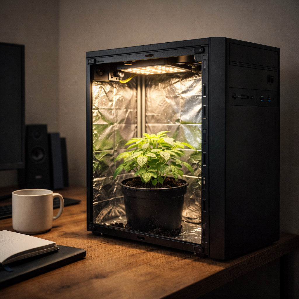 • Budowa: Wykorzystuje się obudowę starego komputera stacjonarnego (od wewnątrz wyłożoną kocem ratunkowym). Oświetlenie to zazwyczaj świetlówki energooszczędne (CFL) lub małe taśmy LED, a za wentylację służą ciche wentylatory komputerowe.