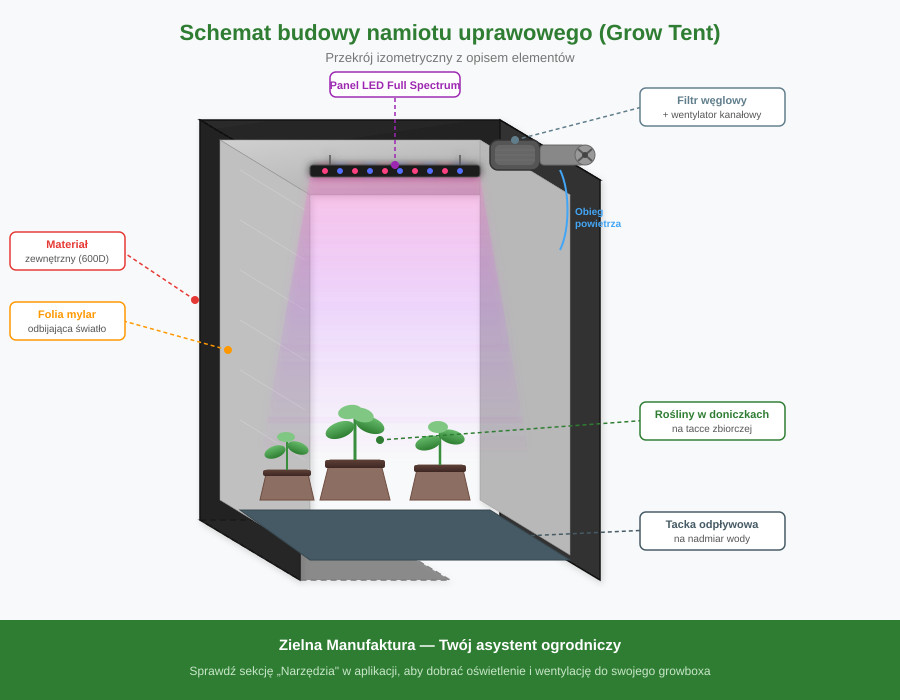 A. Namioty uprawowe (Grow Tents) To najpopularniejsze na rynku rozwiązanie, idealne do piwnic, strychów czy nieużywanych pokojów.