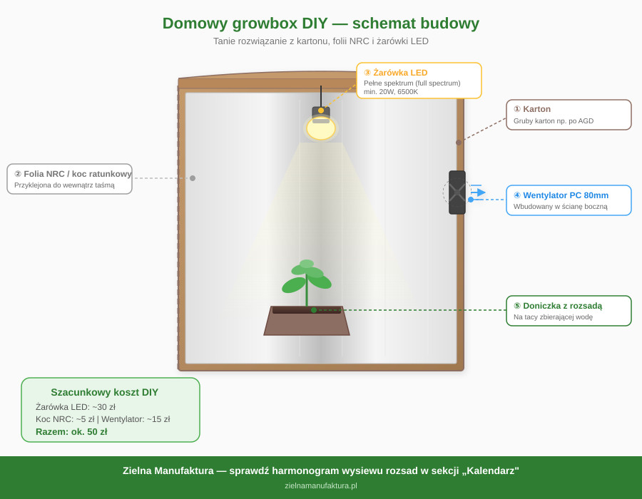 Zbudowanie własnego growboxa jest proste i pozwala zaoszczędzić setki złotych. Poniżej lista niezbędnych elementów wraz z informacją, czego dokładnie szukać w sklepach internetowych lub budowlanych.