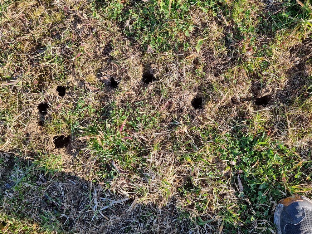 Regularnie — mniej więcej raz na dwa/trzy tygodnie — wkładam karbid w szczeliny i nory w ziemi. W kontakcie z wilgocią wytwarza acetylen, którego zapach jest bardzo nieprzyjemny dla gryzoni. Nie zabija, ale skutecznie odstrasza.