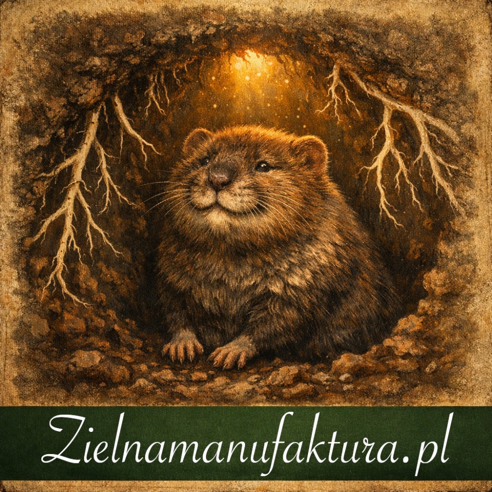 Karczownik ziemny (Arvicola amphibius), znany też jako szczur wodny, to gryzoń z rodziny chomikowatych. Dorasta do 20 cm, żyje w norach i — tu jest sedno — żywi się korzeniami roślin. Nie obgryza ich od zewnątrz. Podkopuje się pod roślinę od dołu i odcina korzeń. Drzewko wygląda normalnie, dopóki przy pierwszym podmuchu wiatru nie przewróci się jak ścięte. Bo właściwie jest ścięte — tylko pod ziemią.