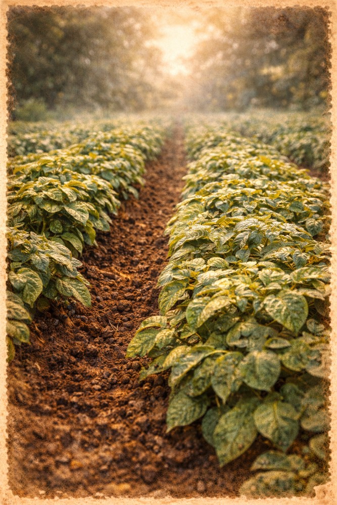 Odmiany wczesne sadzisz nieco gęściej (30 cm), późne — rzadziej (35–40 cm), bo tworzą większe krzewy. Szeroka rozstawa między rzędami to nie rozrzutność — to miejsce na obsypywanie i swobodną cyrkulację powietrza, co zmniejsza ryzyko zarazy.