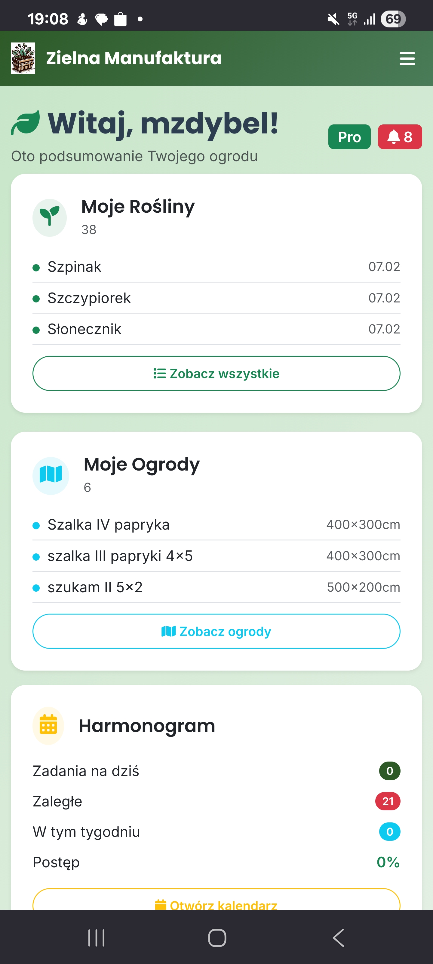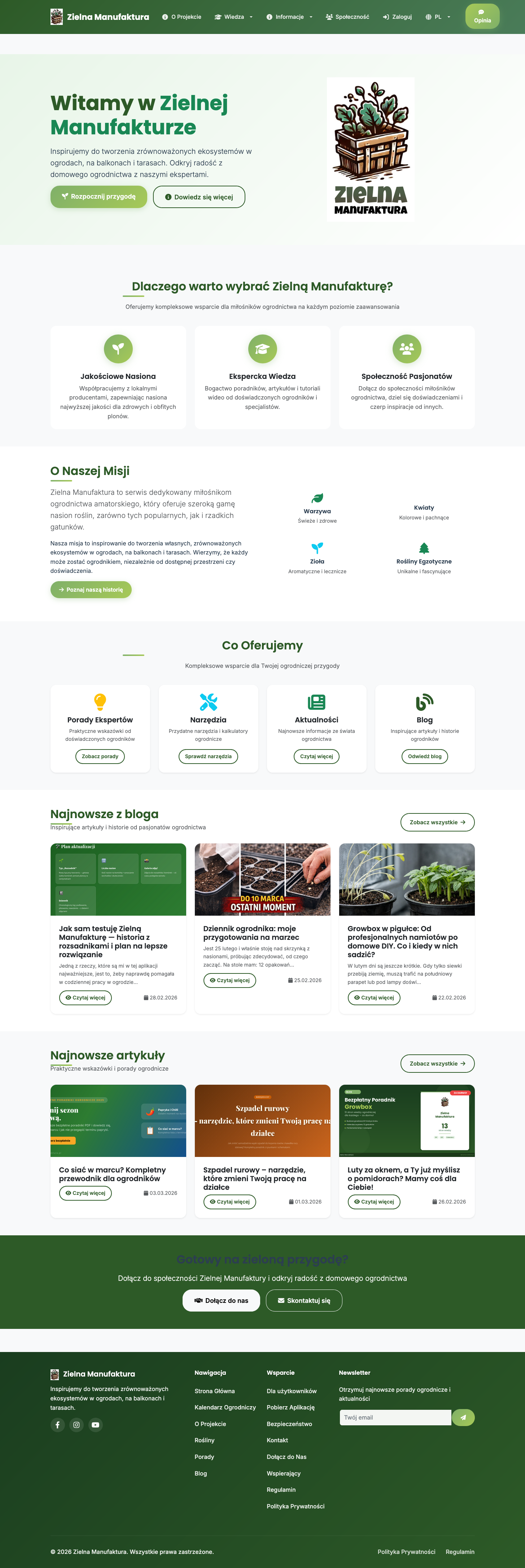 Dlatego jedną z ważniejszych zmian, które wprowadziliśmy niedawno w Zielnej Manufakturze, jest Garden Dashboard — spersonalizowany panel główny, który po zalogowaniu zastępuje generyczne treści i pokazuje dokładnie to, co dla Ciebie ważne.